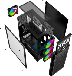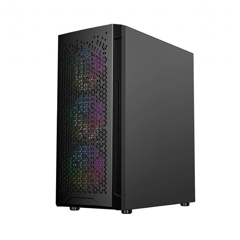 Le Fornax 400X est un élégant midi tower qui mise sur un design épuré et un flux d’air efficace. Le panneau avant perforé avec filtre anti-poussière et les ventilateurs ARGB préinstallés assurent un excellent refroidissement ainsi que des effets lumineux attrayants, faciles à harmoniser avec les autres composants.