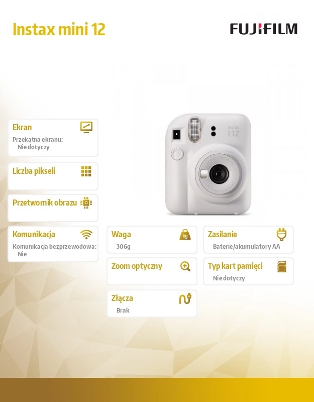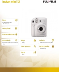 Le Fujifilm Instax Mini 12 est le compagnon idéal pour les escapades, les fêtes et les moments du quotidien. Grâce à l’impression instantanée, vous obtenez des photos physiques en quelques secondes, sans réglages compliqués. Son design minimaliste et son faible poids en font un appareil stylé et pratique à glisser dans n’importe quel sac.