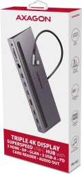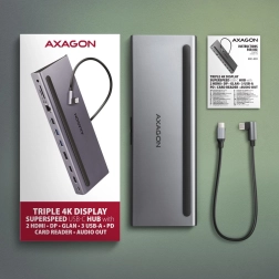 Le puissant hub Axagon HMC-4KX3 permet de connecter trois moniteurs simultanément, chacun avec une résolution allant jusqu'à 4K/30Hz. Grâce à la prise en charge du HDR, vous profiterez d'une palette de couleurs et de contrastes plus étendue. L'interface USB 3.2 Gen 1 permet un transfert de données rapide jusqu'à 5Gb/s, garantissant un travail efficace avec les fichiers.