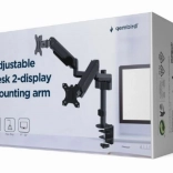 Le support pour deux moniteurs aide à économiser de l'espace sur le bureau tout en assurant un réglage ergonomique des écrans.