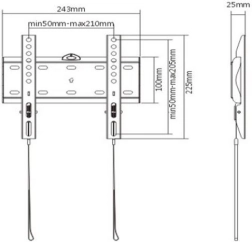Le support est conforme aux normes VESA jusqu'à une taille maximale de 200 mm x 200 mm, assurant une utilisation universelle pour différents modèles de téléviseurs. L'écart par rapport au mur est de seulement 25 mm, garantissant un aspect propre et élégant dans votre espace de vie.