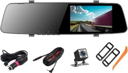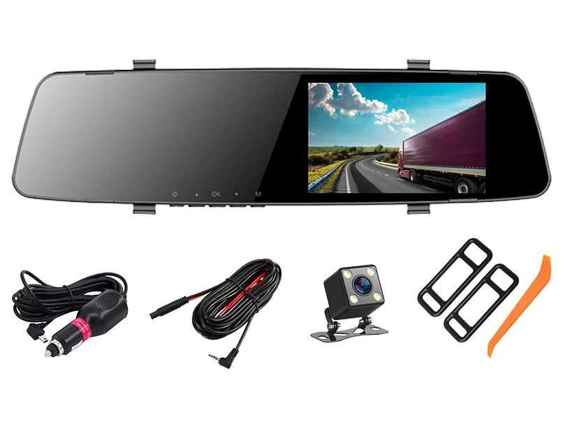 L’emballage comprend une caméra arrière qui aide au stationnement et enregistre en continu ce qui se passe derrière la voiture. Le capteur G verrouille automatiquement les séquences clés en cas de collision, le mode parking active l’enregistrement en cas de choc ou de vibration et la détection de mouvement lance la capture dès qu’une activité est détectée dans le champ de vision. Le microphone intégré ajoute un son clair à la vidéo.