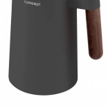 Finition mate gris foncé avec accent bois sur la poignée, large ouverture de remplissage, bouton d’ouverture du couvercle et base à 360° pour un usage quotidien pratique.
