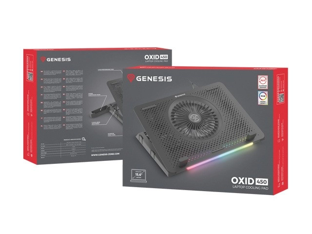Maintenez votre ordinateur portable à une température idéale même lors de jeux exigeants. Le support de refroidissement GENESIS Oxid 450 RGB combine un flux d’air puissant, un attrayant rétroéclairage RGB et une ergonomie pour un usage confortable. Le panneau en aluminium perforé aide activement à évacuer la chaleur et contribue à des températures plus basses et à un fonctionnement plus silencieux.