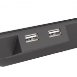 Le pratique hub USB intégré préserve le nombre de ports disponibles et le support de téléphone amovible peut être fixé à gauche ou à droite – idéal pour les notifications, le chat ou le suivi d’informations. Ce support est prêt à être un complément à la fois stylé et fonctionnel de votre setup de jeu.