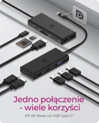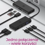 Design et performances : Le boîtier compact en aluminium offre un look élégant et permet un accès pratique aux ports d’extension essentiels, tout en assurant une dissipation thermique efficace. Élargissez vos horizons : Multitâche facilité grâce à la possibilité de connecter plusieurs moniteurs. Chargement des appareils : La technologie de charge via le port Type‑C permet d’alimenter l’ordinateur portable connecté avec une puissance allant jusqu’à 100 watts. Compagnon de voyage : Grâce à son design compact, la petite station d’accueil tient dans n’importe quelle poche. L’aluminium élégant garantit la robustesse en déplacement.