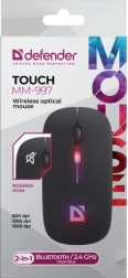 La souris sans fil élégante DEFENDER Touch associe un clic silencieux pour un travail sans distractions, une double connectivité Bluetooth + 2,4 GHz fiable, un rétroéclairage RGB spectaculaire et un réglage précis de 800/1200/1600 DPI. Grâce à la batterie rechargeable, vous économisez sur les piles et la finition noire convient aussi bien au bureau qu’à la maison.