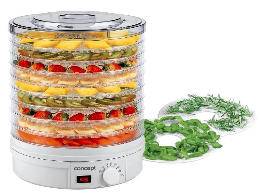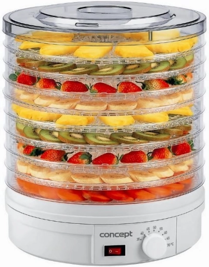 Déshydrateur alimentaire Concept vous permet de prolonger la durée de vie de vos aliments sans perdre d’importantes vitamines et minéraux. Vous pouvez désormais sécher facilement des fruits, des légumes, des herbes et même de la viande.