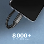La construction est pensée pour un usage à long terme : gaine en nylon tressé avec soulagement de traction, corps de connecteurs métalliques, surfaces nickelées et broches dorées. Des conducteurs en cuivre sans oxygène étamé dimensionnés en 22AWG (alimentation) et 32AWG (données) sont complétés par un blindage multiple pour un signal propre sans interférences. La résistance éprouvée dépasse 8 000 flexions.