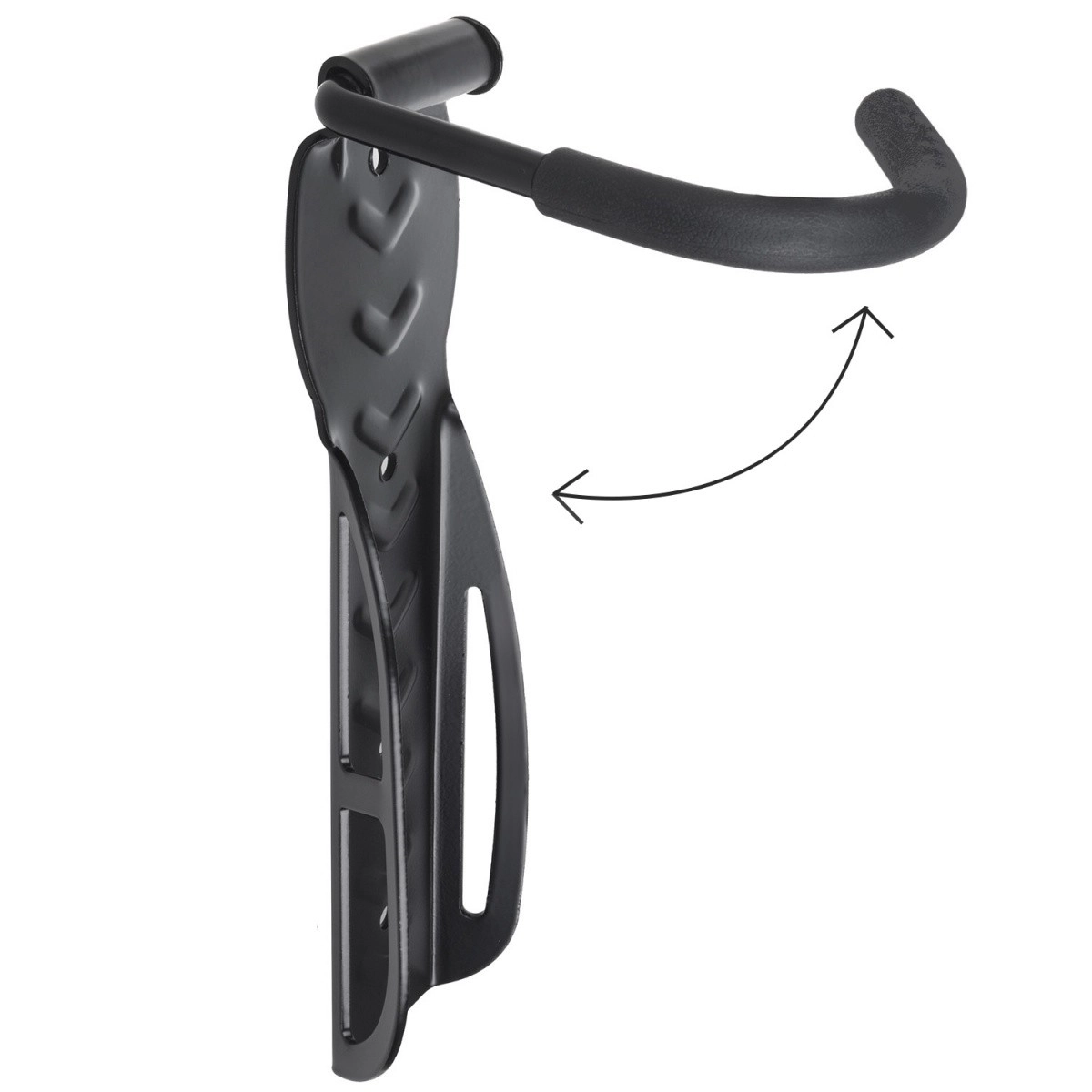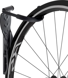 Le crochet revêtu de caoutchouc protège la jante des éraflures et maintient le vélo fermement en place.