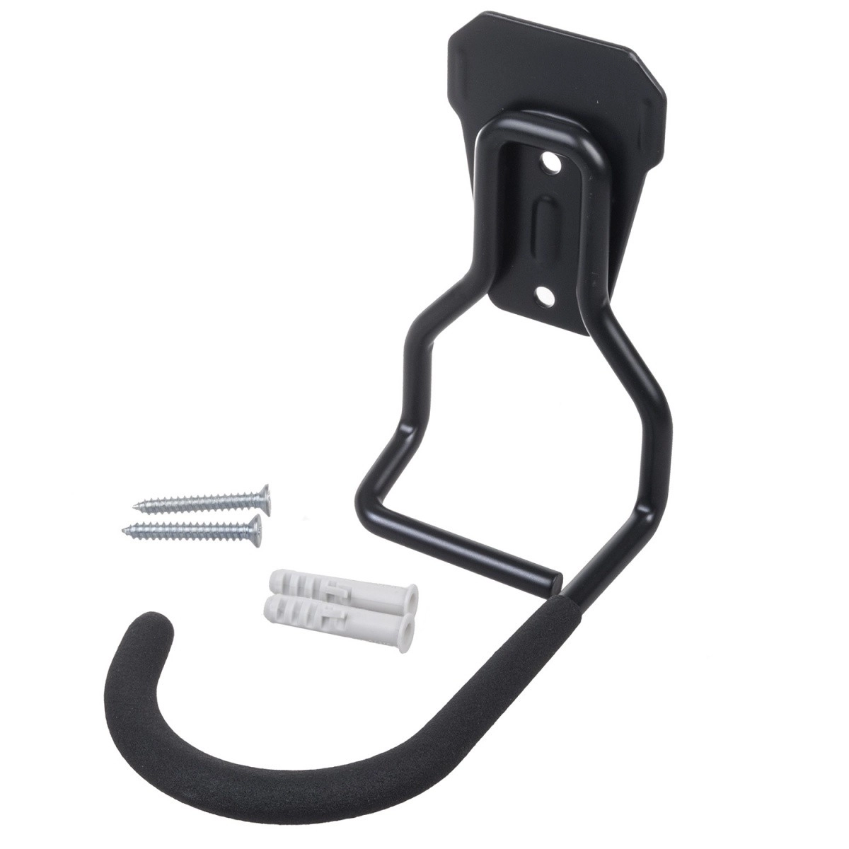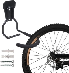 Support mural pratique permettant de ranger le vélo à la verticale et d’économiser de la place dans le garage, la cave ou l’appartement. Structure robuste en acier avec une capacité jusqu’à 20 kg, crochet avec revêtement en caoutchouc contre les rayures de la jante et montage facile grâce aux chevilles et vis fournies pour un rangement sécurisé et stable du vélo.