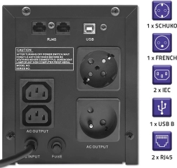 Parmi ses autres caractéristiques remarquables figure la régulation automatique de la tension (AVR), qui assure non seulement une alimentation stable et une consommation réduite de la batterie, mais aussi la protection de l’appareil contre les tensions trop élevées ou trop basses. La fonction de démarrage à froid permet d’allumer l’appareil uniquement à l’aide de l’UPS. Sont également incluses des protections contre les surcharges et les courts-circuits, ainsi qu’un port USB pour la surveillance et la gestion de l’alimentation.