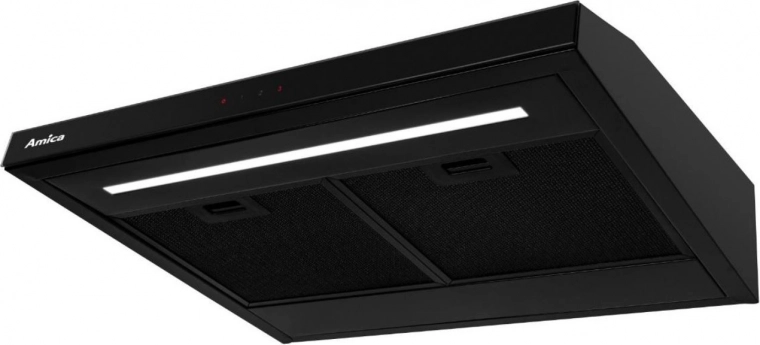 Hotte universelle élégante avec commande tactile, offrant un éclairage LED à intensité réglable, un minuteur d’arrêt automatique jusqu’à 60 min et un entretien facile grâce aux panneaux tactiles sous surface en verre.