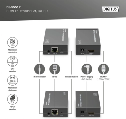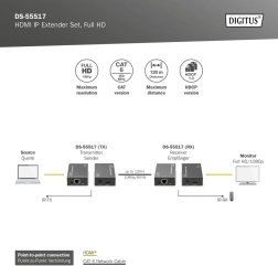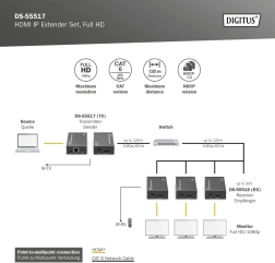 Ce puissant extendeur HDMI sur IP étend de manière fiable le signal Full HD 1080p/60 Hz sur de longues distances. En connexion directe point à point, il atteint jusqu’à 120 m via Cat 6; sur une infrastructure réseau, il permet une portée illimitée et une distribution vers plusieurs écrans.