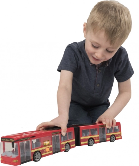 Le bus est soigneusement conçu avec des fenêtres détaillées, des portes et une articulation qui imite un véritable bus articulé.
