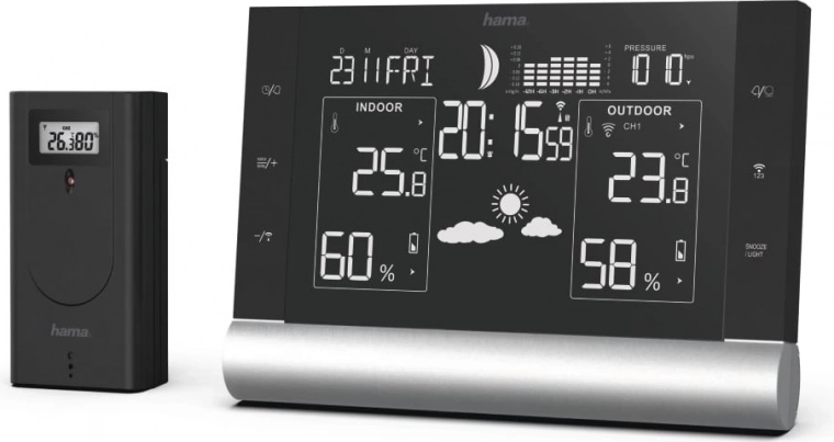 - Thermomètre et hygromètre pour afficher la température et l’humidité à l’intérieur et à l’extérieur.