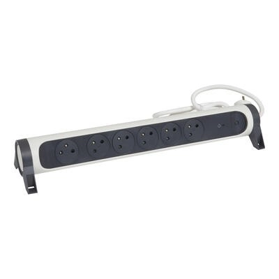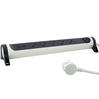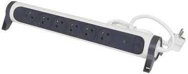 Cette rallonge protégée avec barrette orientable offre six prises de type 2P+T au standard franco-belge. Sa capacité totale est de 3680 W et la tension de 230 V, idéale pour un usage domestique ou bureautique. La barrette peut être orientée de 12° de chaque côté, facilitant le branchement même dans les espaces limités.