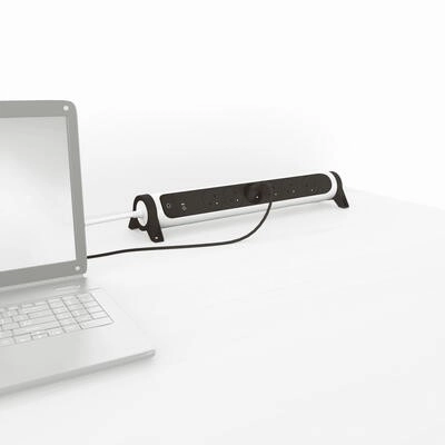 Elle comprend une prise biseautée à 90° pour transformateur afin d’éviter le blocage d’une autre prise. Les autres prises sont inclinées à 45° pour une utilisation confortable. L’interrupteur rétroéclairé en bleu contribue à l’esthétique et à la facilité d’utilisation.