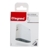 Multiprise pratique et extra plate avec deux ports USB pour connecter et recharger facilement vos appareils, proposée en design blanc et gris foncé.