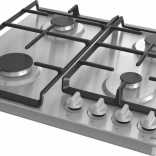 Cette table de cuisson à gaz en inox allie look moderne et praticité pour la cuisine de tous les jours. La surface de cuisson élargie et l’espacement accru entre les brûleurs offrent suffisamment de place même pour des ustensiles très volumineux, tandis que les grilles en fonte garantissent stabilité et durabilité même à haute température.