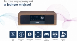 Élégante micro-chaîne au design en bois combinant HDMI ARC (TV Audio Connect), Bluetooth, CD/MP3, USB, AUX et radio FM en un seul appareil compact. Grâce à une puissance de 50 W RMS, un égaliseur et la fonction Loudness, elle offre un son clair et dynamique pour la maison comme pour de petites fêtes. Un écran LED intégré avec affichage de l’heure et réveil facilite l’utilisation au quotidien.