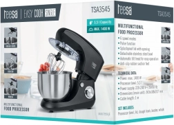 Robot de cuisine Easy Cook SINGLE noir est conçu pour répondre à tous vos besoins en cuisine et pâtisserie. Avec sa construction robuste composée d'une combinaison de métal et de plastique, il est capable de gérer facilement même les tâches exigeantes. Le mélange des ingrédients est simplifié grâce à la tête inclinable, qui permet un accès facile au bol.
