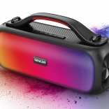 Profitez d’un son expressif et clair avec cette enceinte Bluetooth portable qui combine une puissance de 60 W et un panneau LED spectaculaire. Grâce à la résistance IPX5, elle supporte les éclaboussures et les caprices de la météo, idéale pour le jardin, la terrasse et les voyages. Les effets LED peuvent être facilement désactivés lorsque vous souhaitez simplement écouter sans lumières.