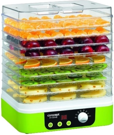 La sèche-aliments Concept SO1060 est une aide fiable pour des provisions toute l’année. Séchez presque tout — des fruits, légumes et herbes, aux champignons et même à la viande. Le séchage maison est doux et préserve la saveur, l’arôme et les nutriments, idéal pour des en-cas sains, des infusions et des mélanges de cuisine.