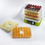 Grâce au minuteur et au réglage progressif de la température entre 35–70 °C, vous définissez facilement les conditions optimales pour différents types d’ingrédients. Le ventilateur intégré assure une circulation d’air uniforme à tous les niveaux, évitant de fréquents réarrangements. Une fois le temps écoulé, l’appareil émet un signal sonore et s’éteint automatiquement.