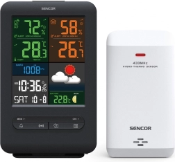 Nous vous présentons la station météorologique Sencor, qui allie un design moderne à des fonctionnalités pratiques. Grâce à l'écran couleur de 5,4", vous lirez facilement toutes les informations nécessaires sur la météo comprenant l'affichage iconique de la prévision: ensoleillé, partiellement nuageux, nuageux, pluie et neige.