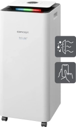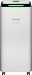 CONCEPT Perfect Air OV2216 associe déshumidification efficace et purification d’air avancée dans un seul appareil. Grâce à une capacité jusqu’à 16 l/jour et à un grand réservoir de 3,5 l, il réduit rapidement l’humidité et empêche la formation de moisissures. La filtration en 4 étapes avec préfiltre, filtre à charbon, UVC et ioniseur capture poussières, allergènes, odeurs et micro‑organismes pour un intérieur plus propre et plus sain.