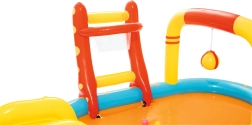 Un équipement riche comprenant des quilles, des anneaux gonflables, des balles et un panier favorise diverses activités et développe coordination et motricité. Les parents apprécieront la vidange facile grâce à la valve de vidange et l’entretien simple. Parfait pour les après-midis entre amis comme pour les moments de joie en famille.