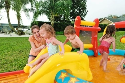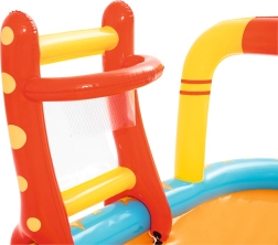 - Divertissement multifonction – toboggan, quilles, anneaux, panier, élément arroseur.