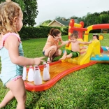 • Divertissement multifonction – toboggan, quilles, anneaux, panier, élément arroseur.