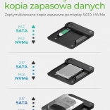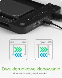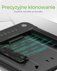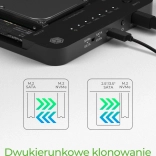 Clonage bidirectionnel: D’une simple pression sur un bouton, clonez entre des HDD/SSD SATA 2,5"/3,5" et des SSD M.2 PCIe NVMe, tout en préservant une copie fidèle de toutes les données et configurations.