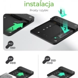 Installation simple: Le design à insertion facile sans outils permet d’insérer des disques 2,5"/3,5" ou des SSD M.2 directement dans l’emplacement.
