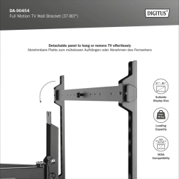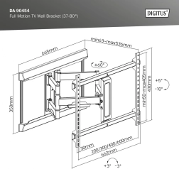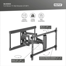 Le support dispose d’un bras extensible avec une plage de 6,3 à 53,6 cm, permettant un réglage optimal de l’angle pour un visionnage idéal. Rotation de +60 à -60° et inclinaison de +5 à -10° pour une adaptation selon les besoins de l’utilisateur. La rotation horizontale de +3 à -3° assure un positionnement précis de l’écran.