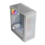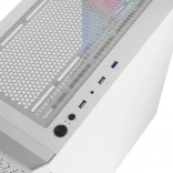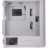 Boîtier de jeu blanc élégant Logic Aramis ARGB MIDI offrant un refroidissement excellent avec un panneau avant mesh, 4 ventilateurs ARGB préinstallés, un panneau latéral en verre trempé sur charnières et un pratique USB 3.0 sur le panneau supérieur. Compatible avec les longues cartes graphiques, une gestion efficace des câbles et le refroidissement liquide – base idéale pour une configuration gaming moderne.
