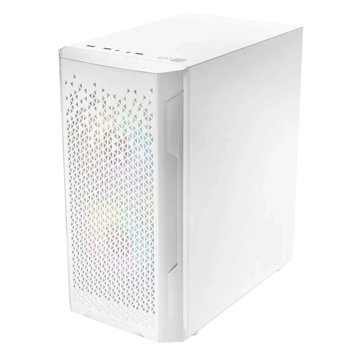 • Airflow maximal grâce à la façade perforée et aux 2× ventilateurs ARGB 120 mm