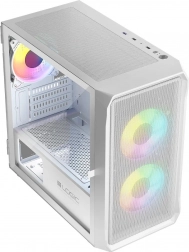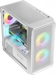 Prêt pour la performance : accueille une GPU jusqu’à 340 mm, un refroidisseur CPU jusqu’à 155 mm et prend en charge le watercooling. Grâce aux filtres anti‑poussière sous l’alimentation, sur le dessus et à la façade mesh, la configuration reste plus propre et plus silencieuse. Le panneau I/O supérieur propose USB 3.0, deux USB 2.0, un combo audio 3,5 mm, le bouton Power et un bouton de contrôle du rétroéclairage ARGB.