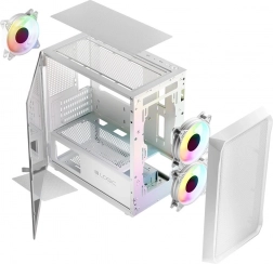 Deux ventilateurs ARGB 120 mm à l’avant et un 120 mm à l’arrière, associés à une façade et un dessus perforés, maintiennent des températures basses même en charge.