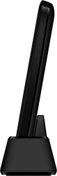 L’image montre un élégant appareil électronique noir de type téléphone mobile avec station d’accueil.