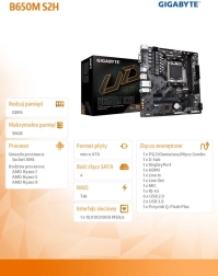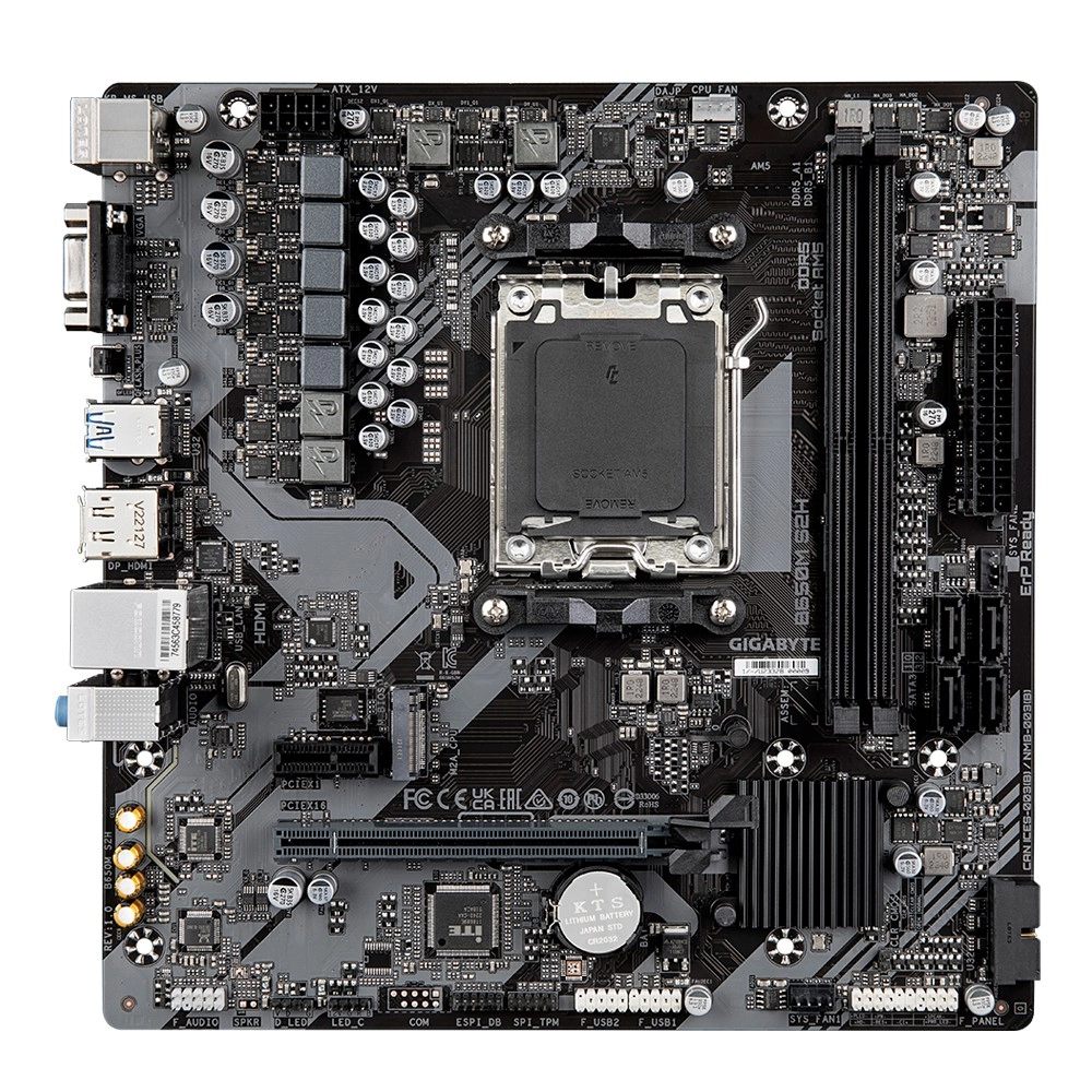 La carte mère compacte GIGABYTE B650M S2H pour socket AM5 offre la prise en charge des processeurs AMD Ryzen 7000, de la mémoire DDR5 moderne et du stockage M.2 PCIe 4.0. Elle propose une alimentation stable 5+2+2 phases, un réseau GbE LAN rapide et une connectivité étendue HDMI, DisplayPort et D-Sub. Grâce aux fonctionnalités Q-Flash Plus et Smart Fan 6, vous mettez facilement à jour le BIOS et maintenez le système frais et silencieux.