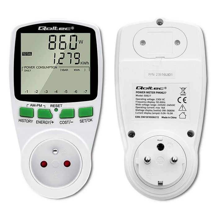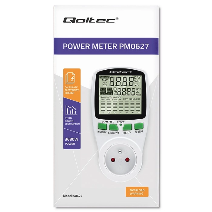 Identifiez clairement quels appareils sont les plus grands « gouffres » énergétiques. Le Qoltec PM0627 fournit une mesure précise sans approximation, afin que vous puissiez calculer les coûts de manière fiable et évaluer l’efficacité des économies. Grâce à son LCD rétroéclairé, vous vérifiez facilement la puissance actuelle, le total des kWh, l’heure et le coût selon le tarif saisi.