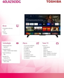 Téléviseur LED 40" TOSHIBA avec fonctions smart