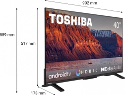 Profitez de vos films, séries et vidéos préférés sur un écran d’accueil clair et intelligent avec le téléviseur LED TOSHIBA de 40". Il offre un design moderne à cadre fin, un accès facile aux applications comme YouTube et Disney+ et une image de qualité pour le divertissement quotidien. Grâce aux fonctions intelligentes, au pied stable et à la connectique riche, c’est un choix idéal pour le salon comme pour la chambre. Découvrez une smart TV à interface intuitive, streaming rapide et design élancé.