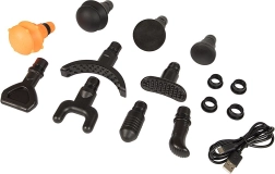 La boîte comprend 10 embouts interchangeables pour différents groupes musculaires et un étui robuste pour un rangement sécurisé et un transport facile.