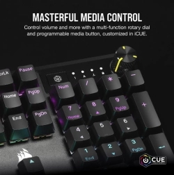 Le clavier de jeu CORSAIR K70 CORE vous permet de jouer au meilleur niveau et, grâce au contrôle facile des médias et aux interrupteurs linéaires CORSAIR MLX Red, le jeu comme la saisie deviennent un vrai plaisir.