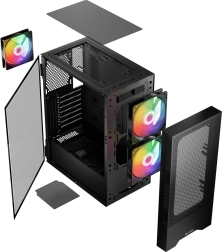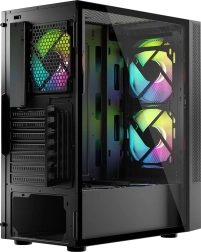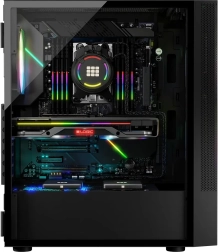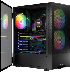 La conception avec panneaux en mesh et trois ventilateurs ARGB fournit un excellent refroidissement avec la possibilité de montage de deux ventilateurs supplémentaires ou de refroidissement à eau.