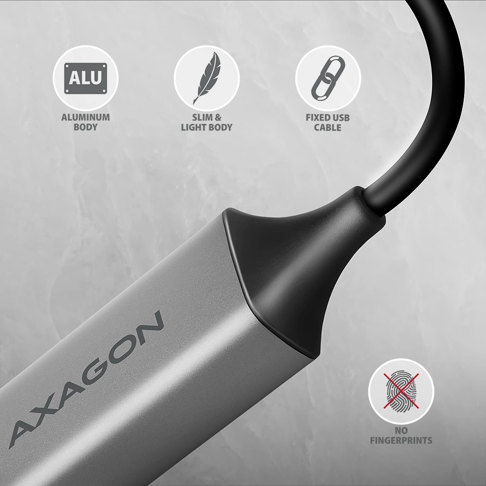 La carte réseau USB universelle AXAGON ADE‑TXCA ajoute ou remplace un port RJ‑45 manquant et assure une connexion filaire fiable partout où le Wi‑Fi est instable. Grâce à l’adaptateur USB‑C → USB‑A fourni, vous connecterez l’adaptateur pratiquement à tout ordinateur, tablette ou téléphone. Le boîtier métallique en aluminium offre résistance et dissipation thermique efficace, tout en conservant des dimensions minimales et un faible poids.
